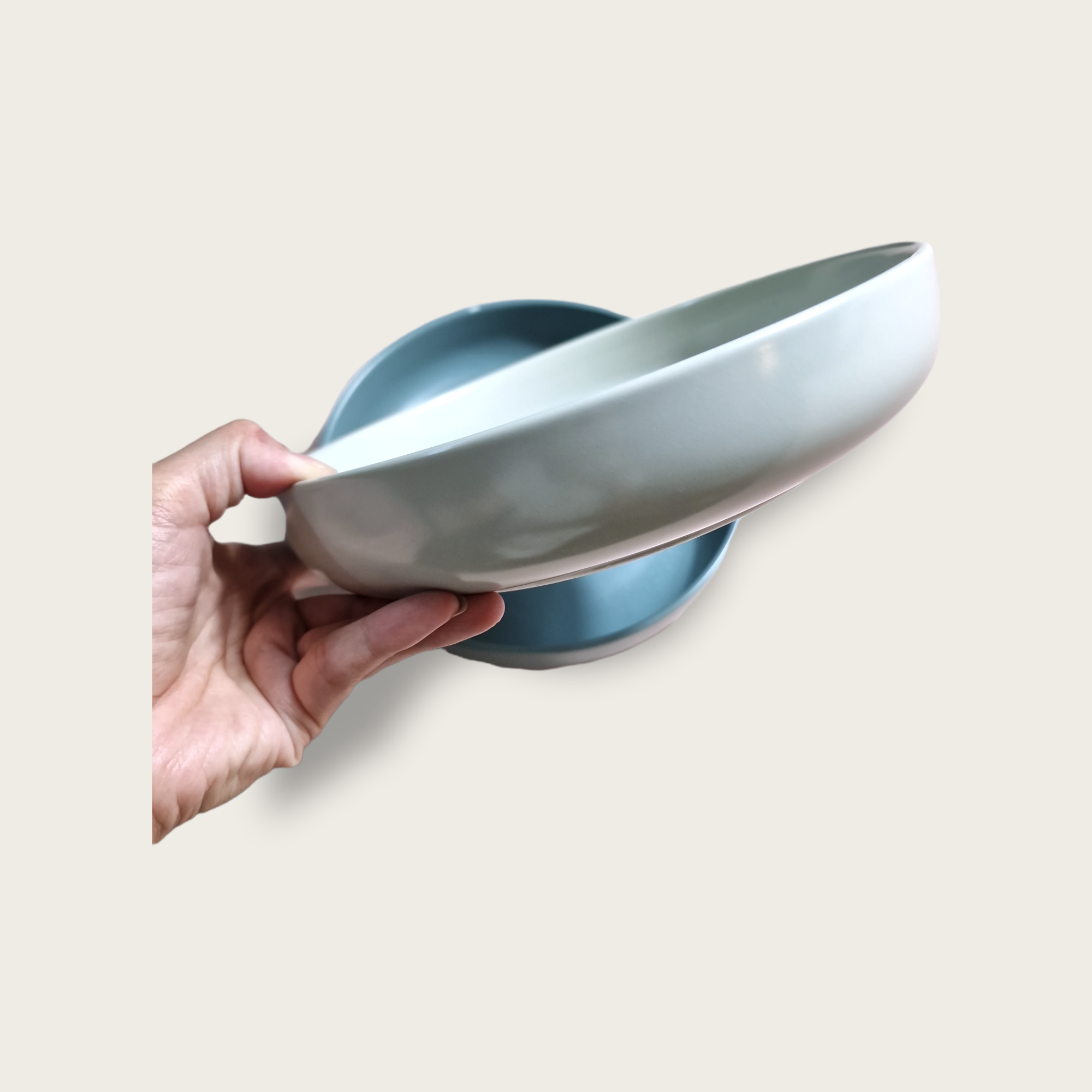 Djup skål med Glasyr i Blå & Vit Ø15,5cm | H7,5cm